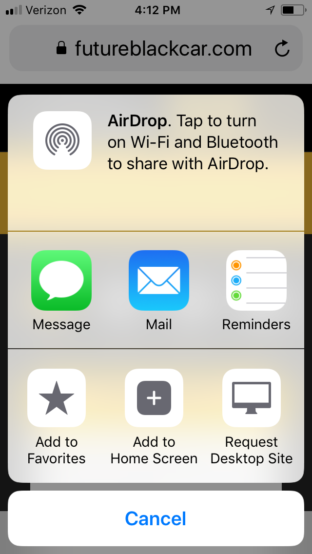 Hope all is well! I'm proud to announce that you can now establish an Apple web App shortcut to the FutureBlackCar.com booking system on your iPhone in a few easy steps.